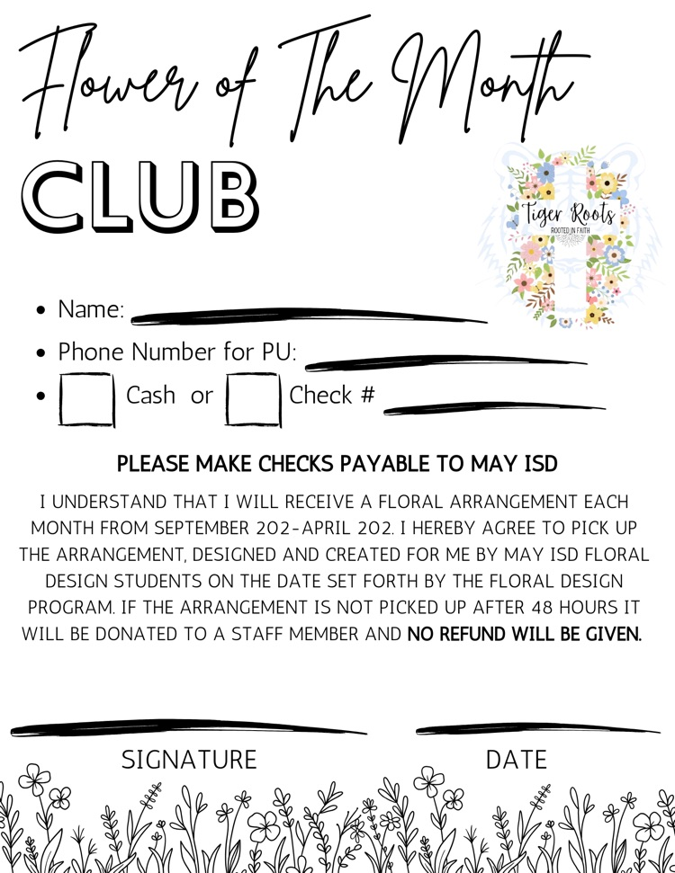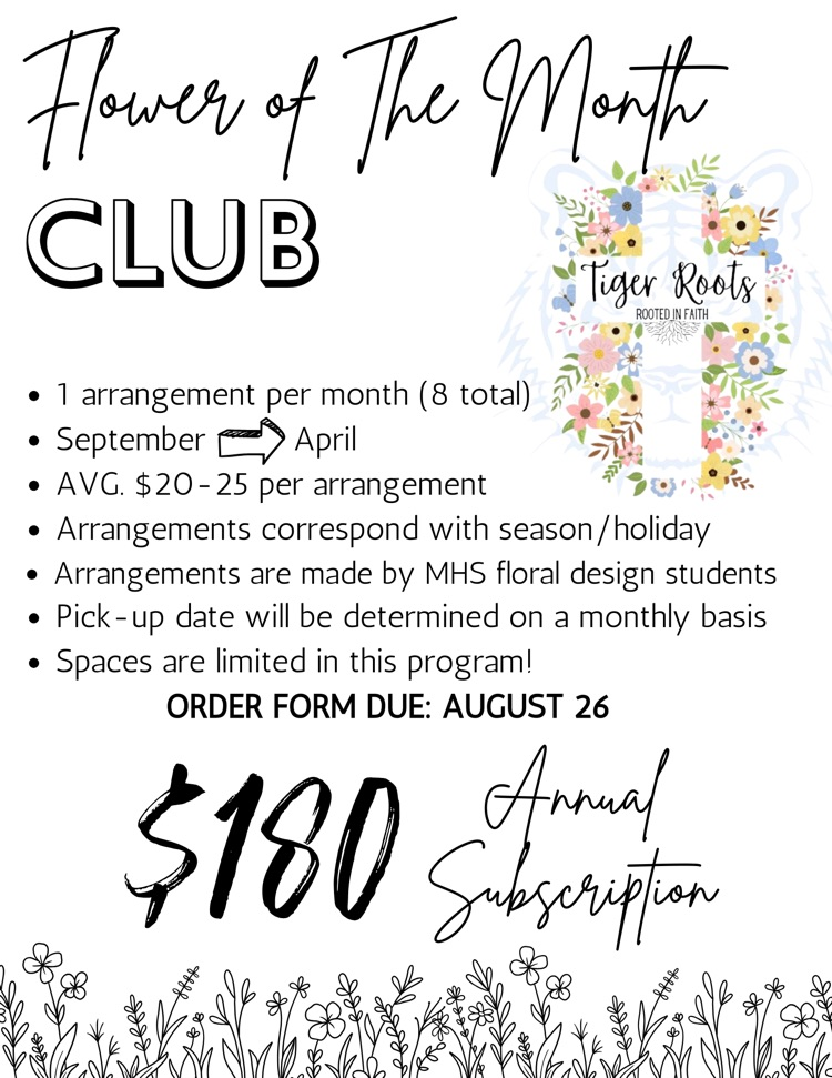Ready to branch out and try something new?💐Join the May Floral Design classes FOTM club! Check out the flyer below for details - don't let this opportunity wilt away- spaces are limited, turn in your order form ASAP!